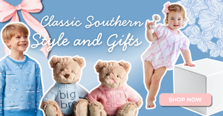 Whether you're shopping for timeless looks, traditional classics, or the perfect gift for an upcoming baby shower, our kid’s boutique has something for every taste and occasion. From adorable baby outfits and children’s clothing to boutique toys and books, each collection features a wide variety of options that are perfect for any celebration—adding a personal touch of Southern charm to your everyday moments!