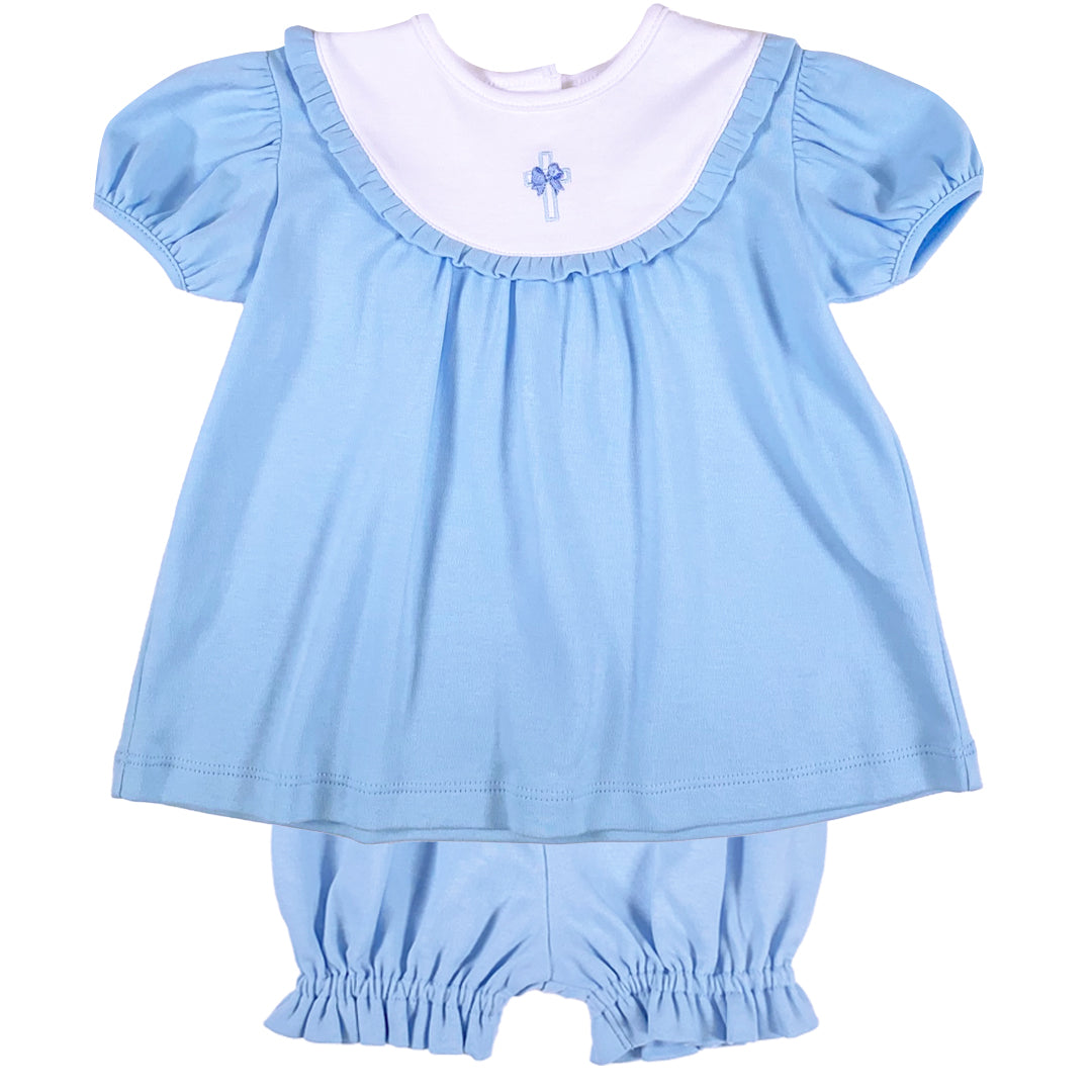 Baby Girls’ Blue Cross Dress and Bloomers Set by Ishtex