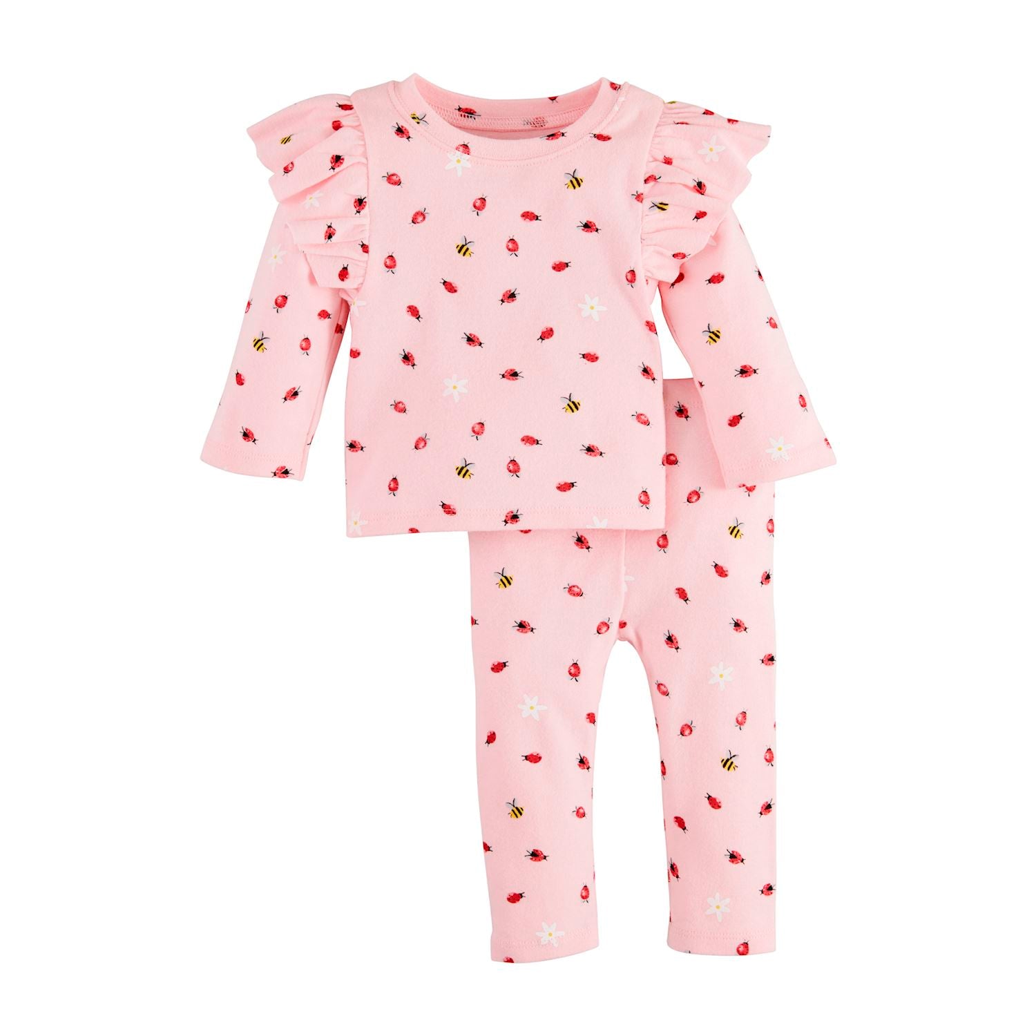 The cheerful pink fabric covered in tiny ladybugs, bees, and daisies adds a playful look that’s sure to make her smile. Moms love how this outfit looks boutique-cute while staying practical for everyday wear.