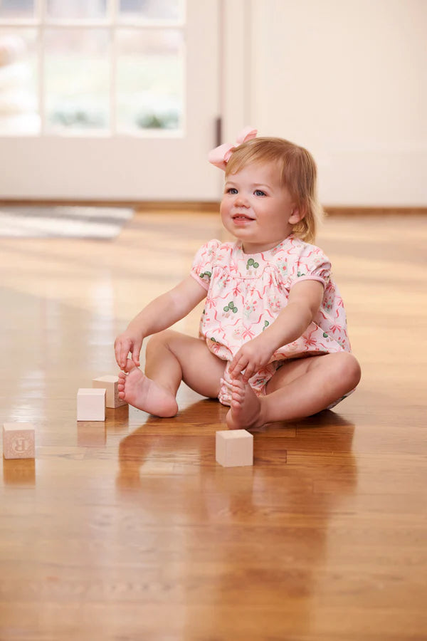 The Blythe Bubble by The Beaufort Bonnet Company is a sweet and practical choice for baby girls. Featuring the timeless Boxwoods and Bows print with Palm Beach Pink trim, this bubble is perfect for holiday gatherings, family photos, or everyday play. With its classic silhouette and heirloom-inspired design, it’s a piece you’ll treasure long after she’s outgrown it.