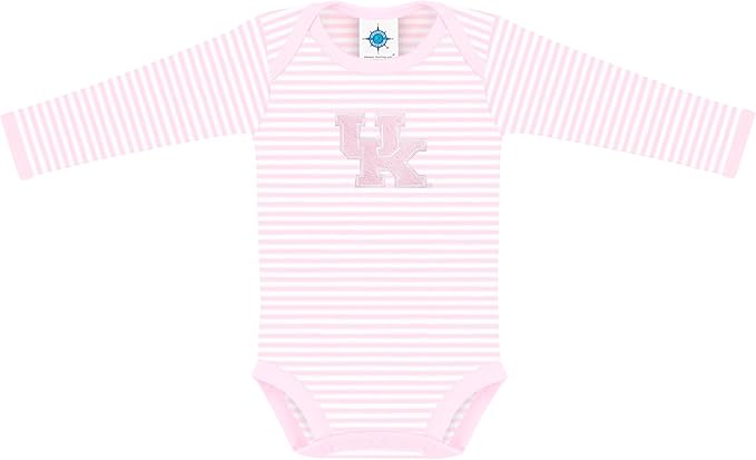 Your little Wildcat will be ready to cheer from day one in our University of Kentucky Wildcats Long Sleeve Striped Infant Bodysuit. Designed with comfort and team spirit in mind, this soft 100% cotton bodysuit features an embroidered UK logo front and center. Available in both classic blue and white or sweet pink and white stripes, it’s the perfect outfit for future fans.