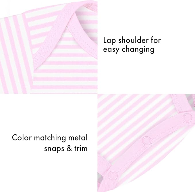 The lap shoulder neckline and color-matched metal snaps make diaper changes a breeze, while the long sleeves add extra warmth for cool game days or cozy mornings at home.