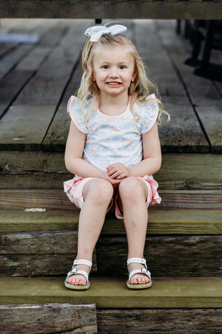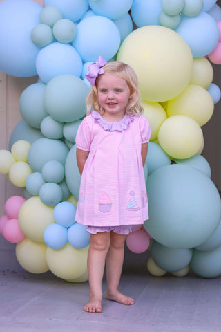 Short Sleeve Britt Romper – Golden Birthday / Pier Party Pink