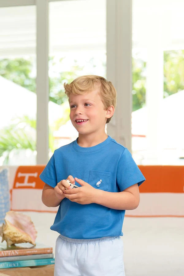 Every boy needs a classic tee that works just as well for picture day as it does for running around outside. The Carter Crewneck in Wood Boat Blue by The Beaufort Bonnet Company is that go-to piece. With its rich blue color, soft knit fabric, and signature stork logo on the pocket, this shirt is a polished take on everyday comfort. Moms love it because it holds up to playtime and still looks sharp, while boys love it because it feels like their favorite tee.