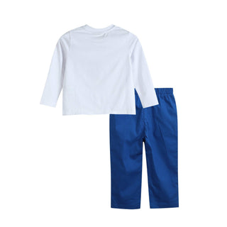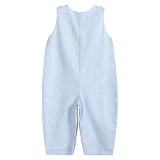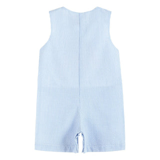 Tractor Pumpkin Smocked White Shirt and Blue Seersucker Pant
