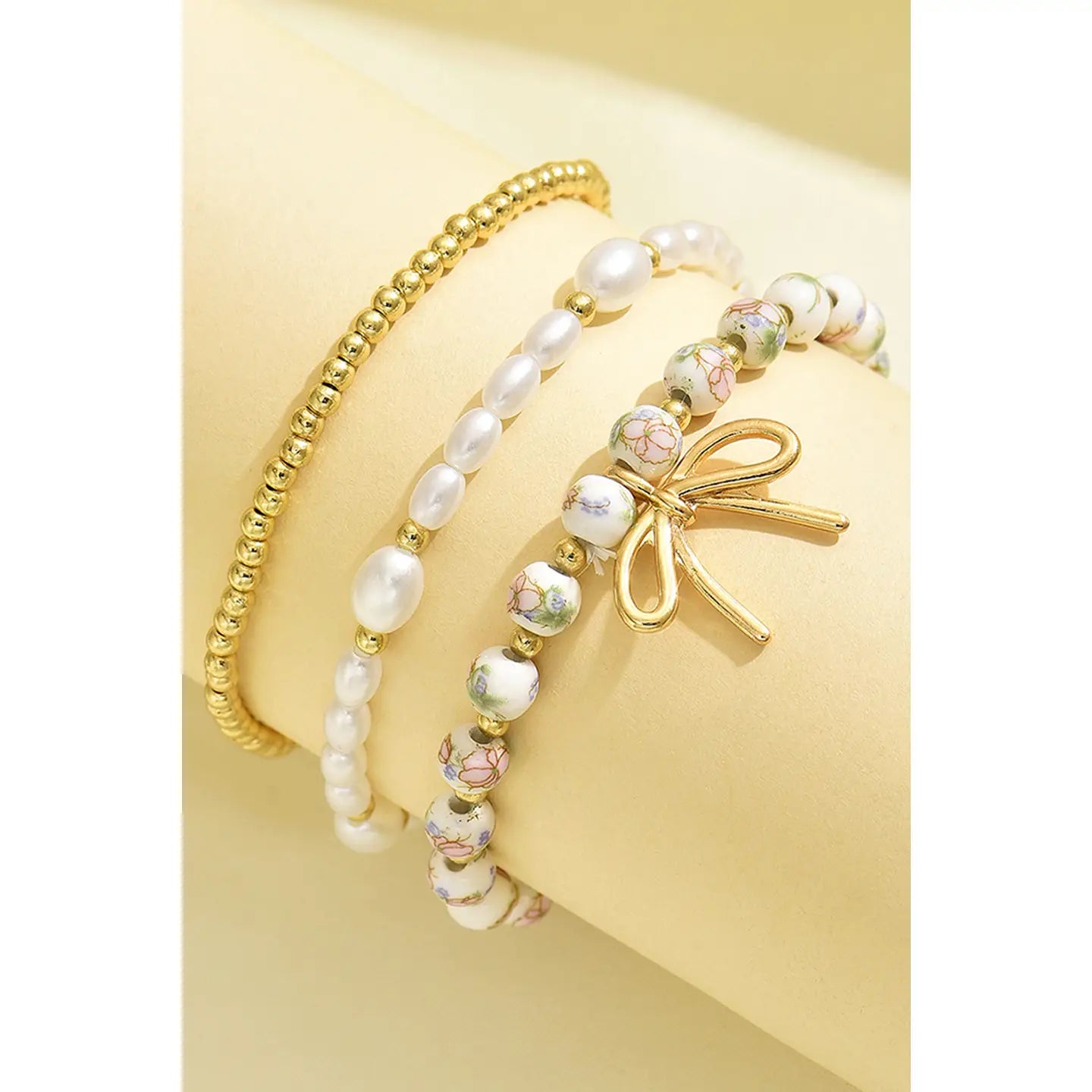 Bow Knot Charm Beaded Triple Layer Bracelet Set