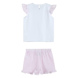 White and Pink Seersucker Baby Top and Shorts Set