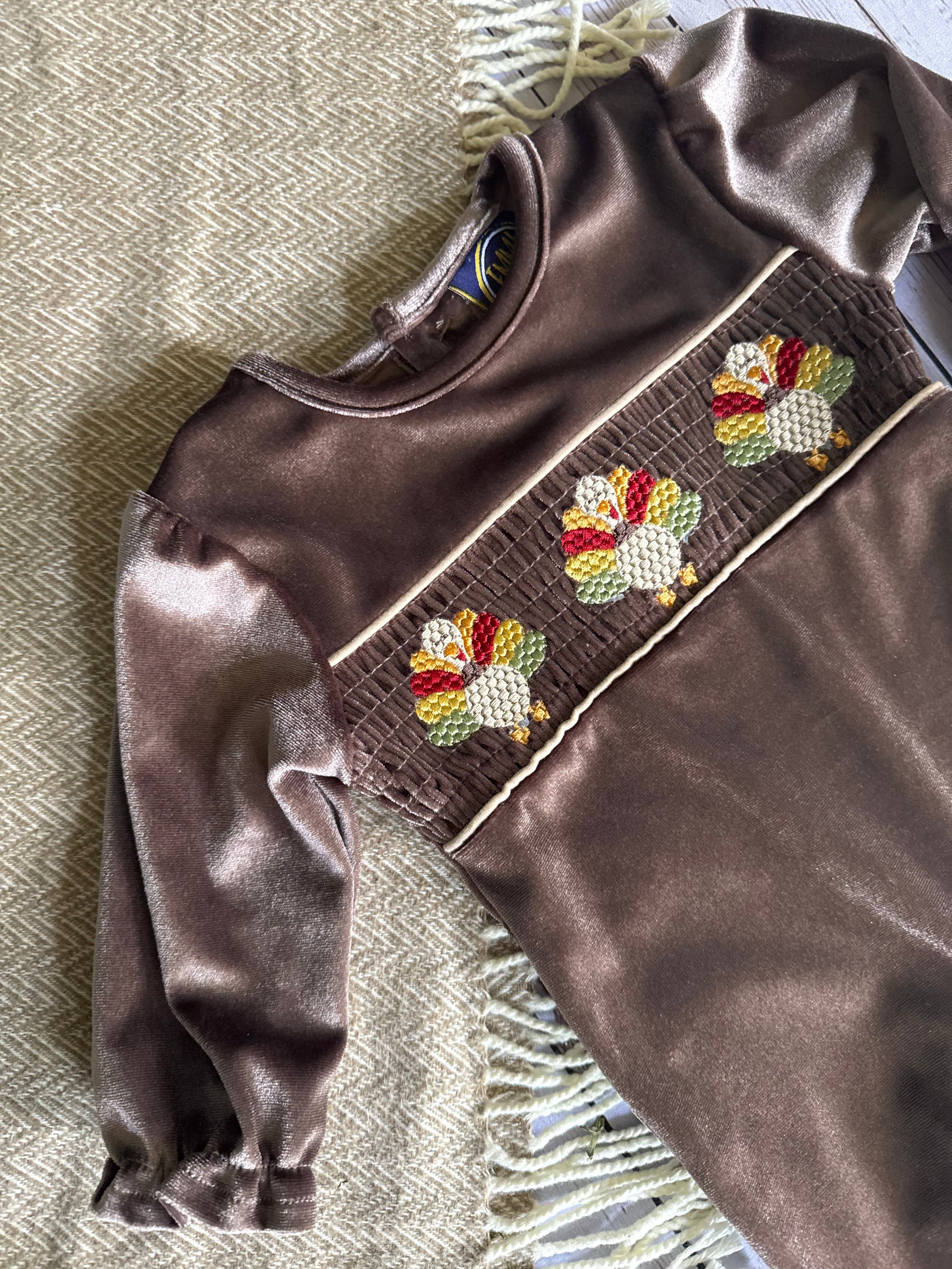 Festive Fall Style: Adorable embroidered turkey design makes it perfect for Thanksgiving and autumn events.