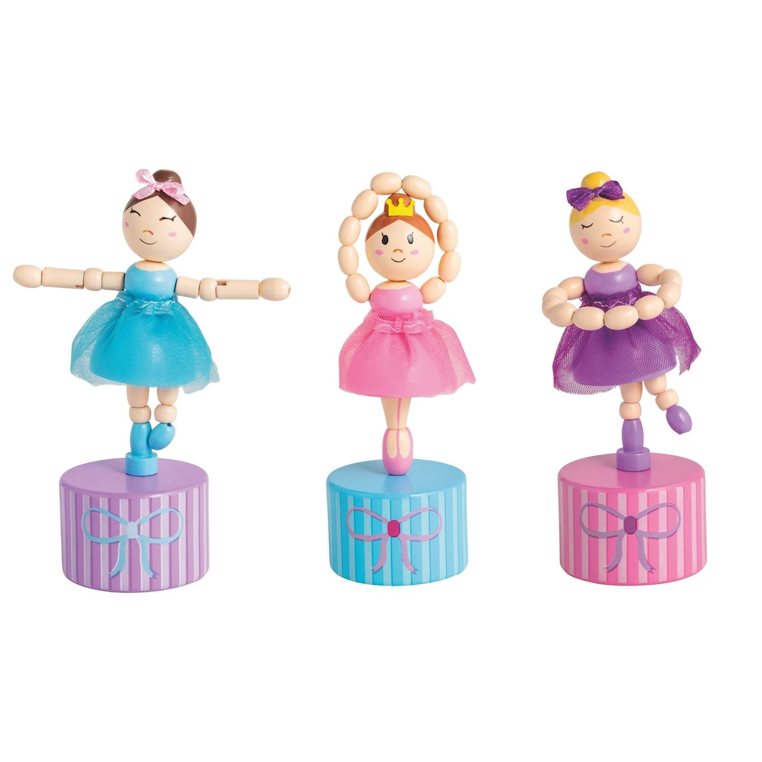 Bring magic to playtime with these charming Mud Pie Wooden Ballerina Collapsing Doll Toys that twirl and tumble with a simple push. Featuring colorful tulle skirts and durable craftsmanship, they are the ultimate timeless gift for every budding dancer.