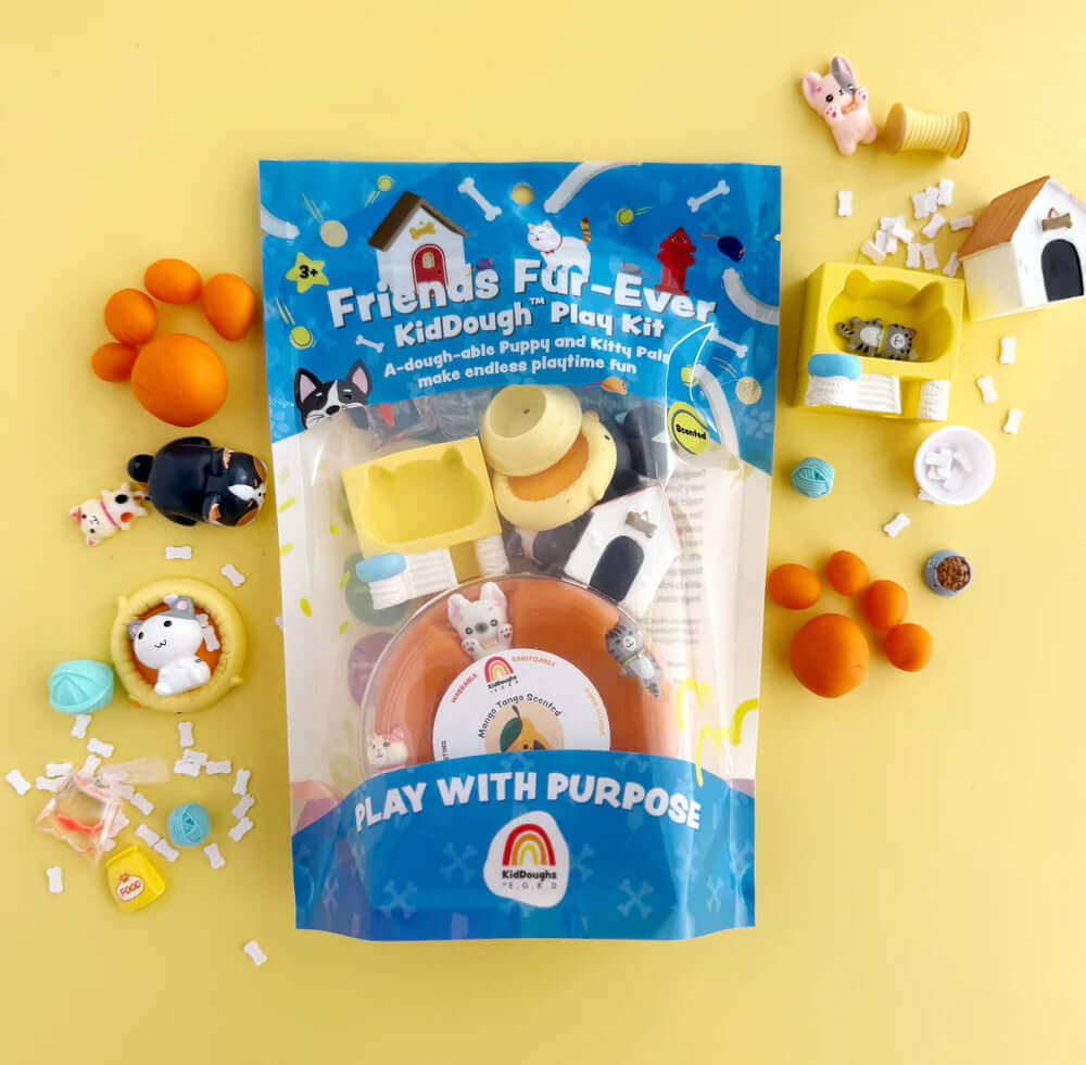 Each Play Kit includes themed figurines, sensory tools, and an 8 oz. jar of signature KidDough. No extra prep required—just open, explore, and play with purpose.