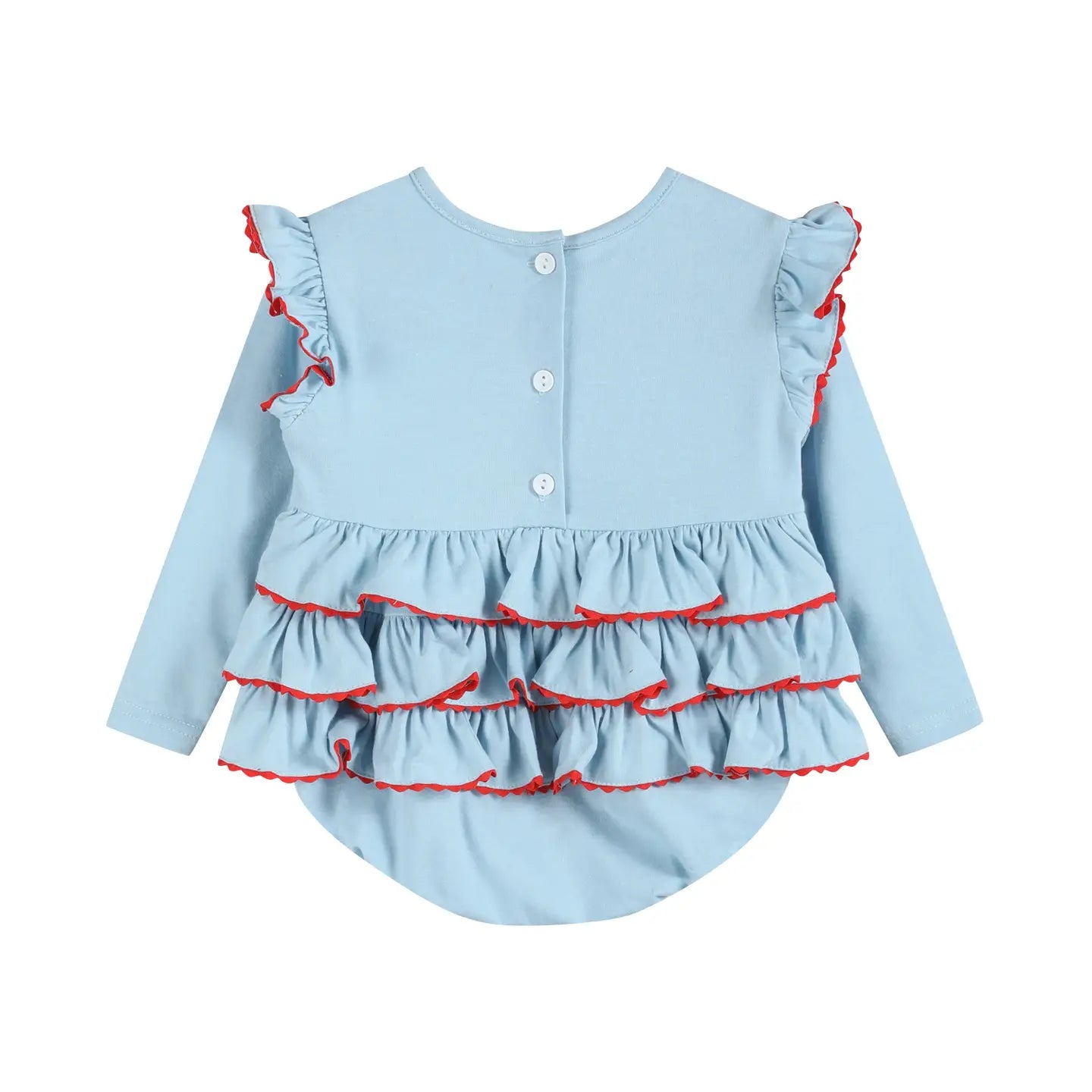 Lil Cactus Light Blue Christmas Tree Smocked Knit Ruffle Romper
